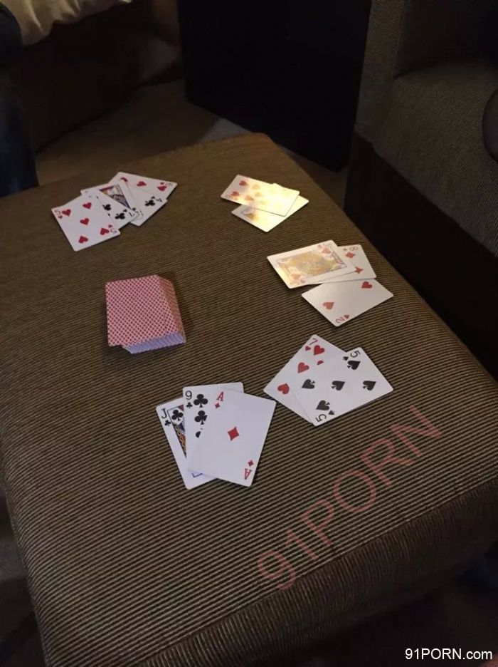 单男洗完澡后,我们拿住事先准备的扑克,开始斗牛~ 输的人脱一件衣服