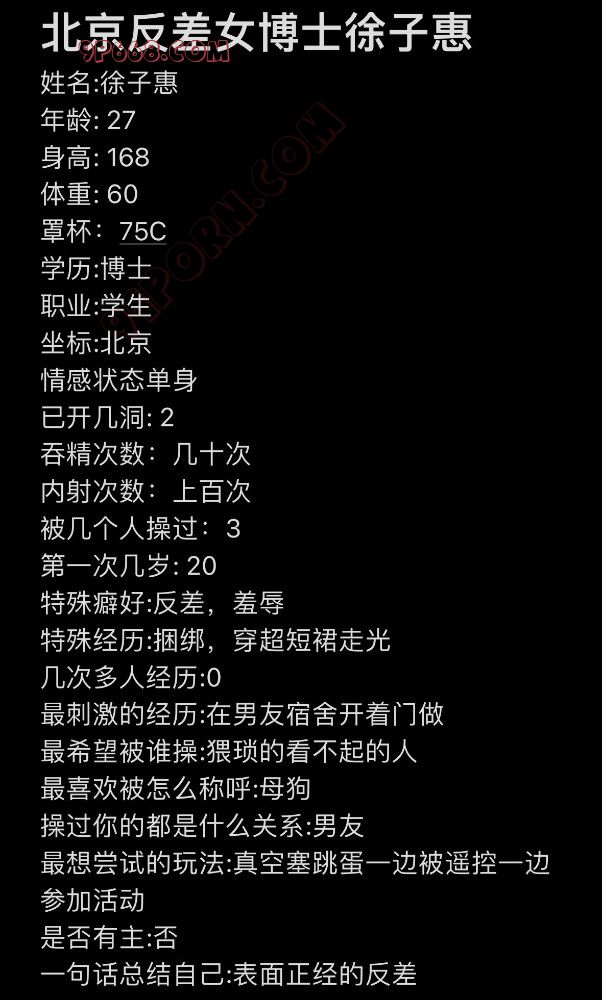 曝光个自愿来投稿求羞辱的帝都母狗女博士,女主会看回复