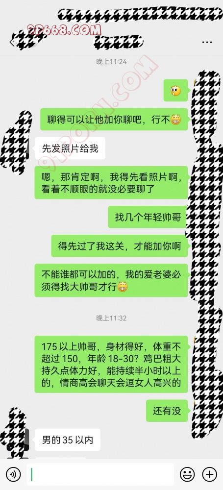 请看清楚要求再加我,不然也是浪费彼此时间。通过后做自我介绍,发照片,不要闪照,我得转给老婆看。